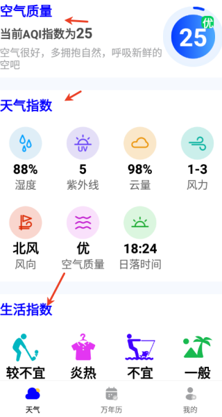 3、空气质量、天气指数、生活指数等信息,我们会逐步为大家提供。
