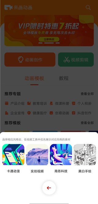 3、挑选软件自带的风格模板资源,为动画打造出理想的主题风格。