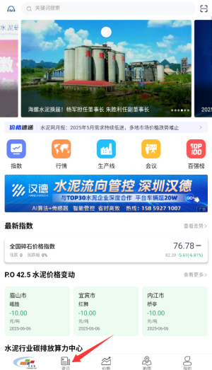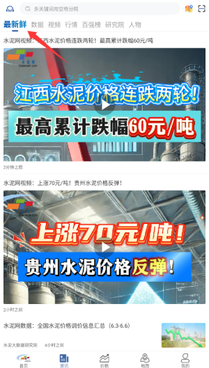 1、登录水泥网后,在首页顶部的导航栏中找到并点击“资讯”按钮,即可进入专业建材市场动态板块。