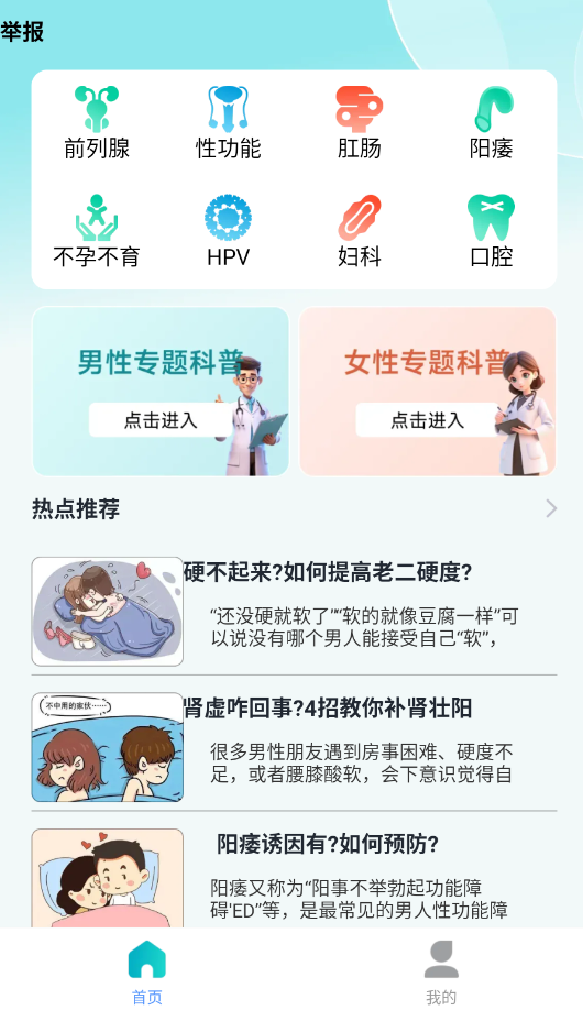 2、点击“男性健康”专区,能获取前列腺保养、性功能调理等男性专属的健康知识。