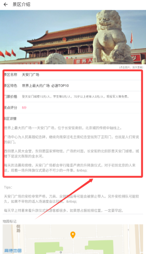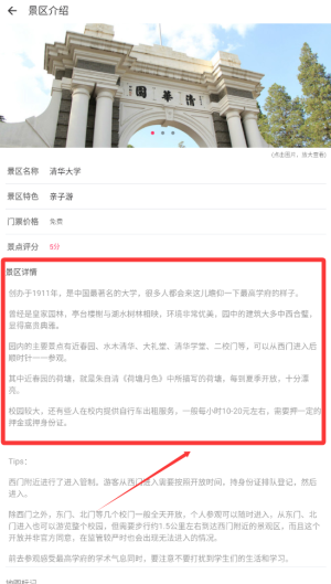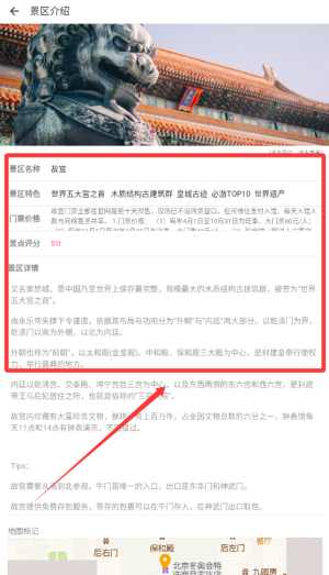 2、它提供涵盖门票价格、详细地址与人文历史等信息的景点介绍,助力用户全方位知晓目标景区的相关背景。