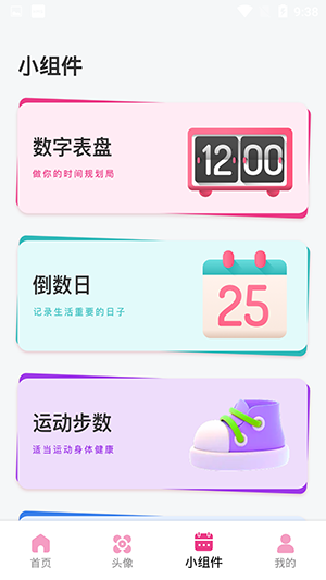 2、个性小组件:可自由设置组件名称、变换颜色、调整背景样式,兼具美观与实用。