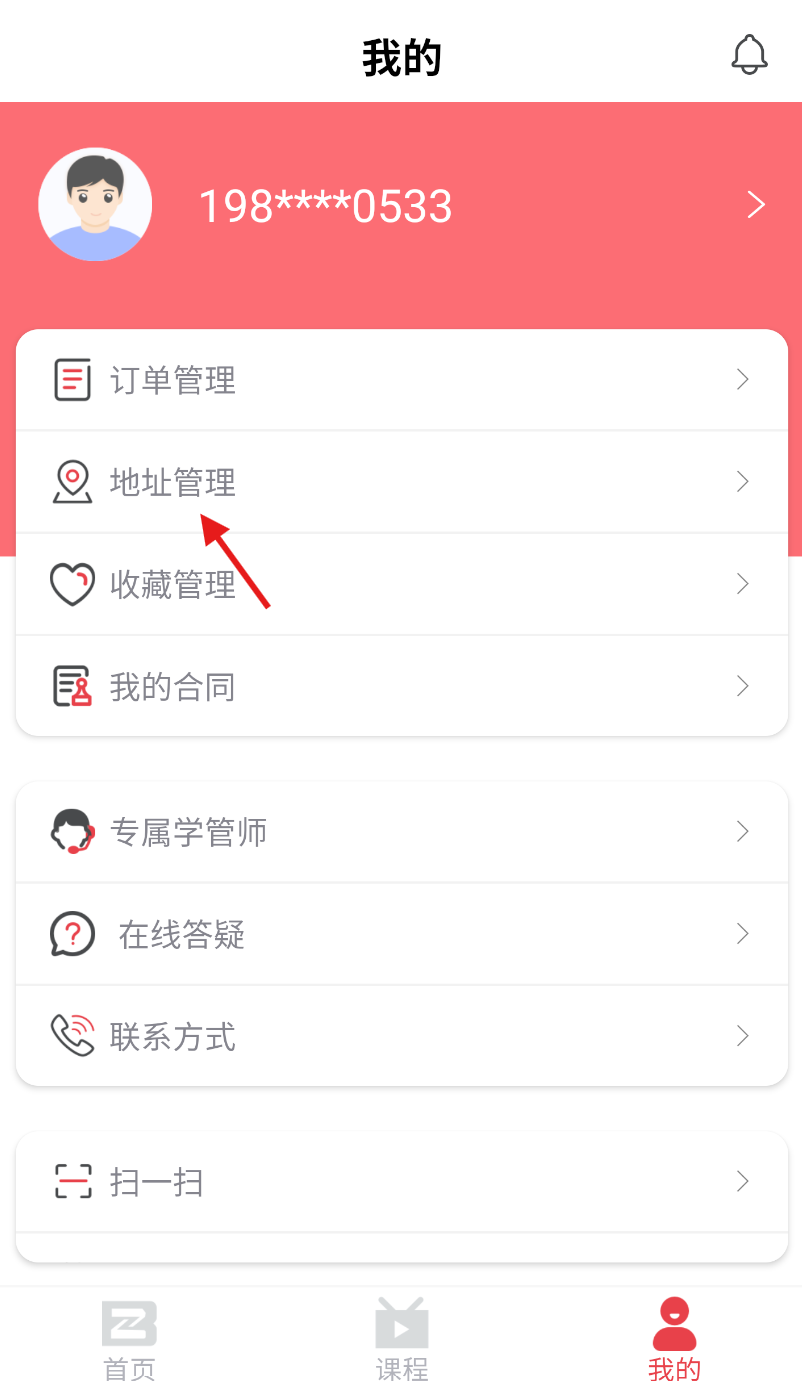 进入个人中心后,在功能列表里找到“地址管理”板块,点击进入该界面。