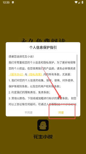 1、请点击同意按钮以确认相关条款,这样才能顺利进入应用程序,开始您的使用体验。
