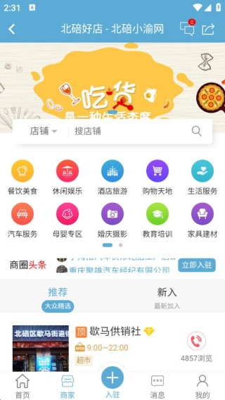 2、点击商家选项,即可获取各类店铺的信息内容,也能通过店铺搜索功能,查看具体的店铺详情。