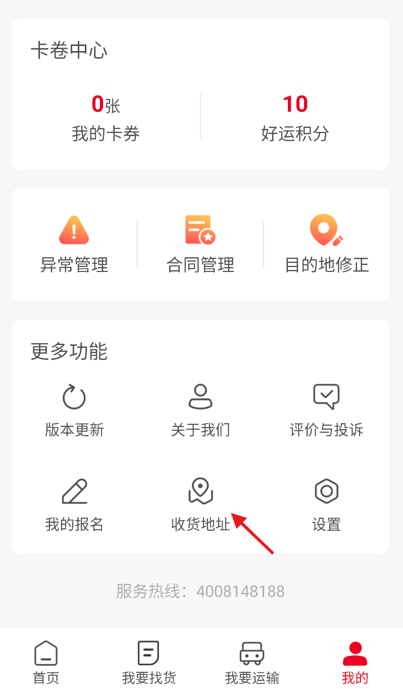 进入“我的”页面后,用手指向下滑动屏幕,找到“收货地址”板块并点击进入。