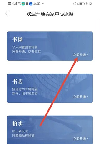 3、用户将进入卖家中心开通服务,根据自己的情况选择想要开通的项目,这里选择的是“书摊”。