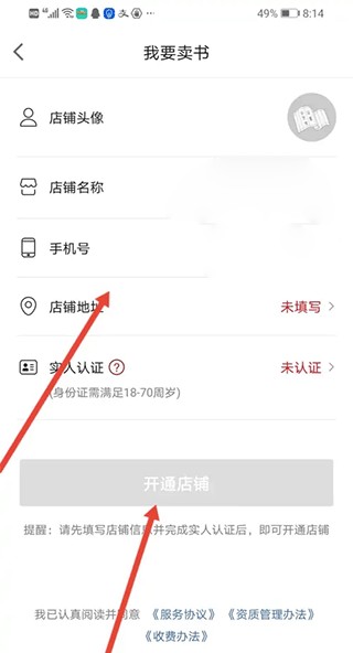 4、进入“我要买书”页面后,根据指示填写所有信息资料,并点选下方的“开通店铺”,等待申请通过就可完成开通。