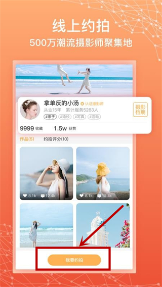 3、实时约拍,众多的摄影师入驻,想拍的风格都可以快速找到,迅速约拍;