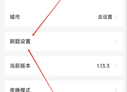 2、进入设置页面后,找到【刷题设置】这一项并点击进入;
