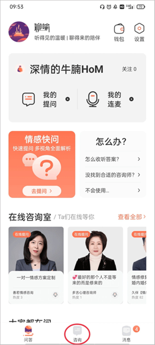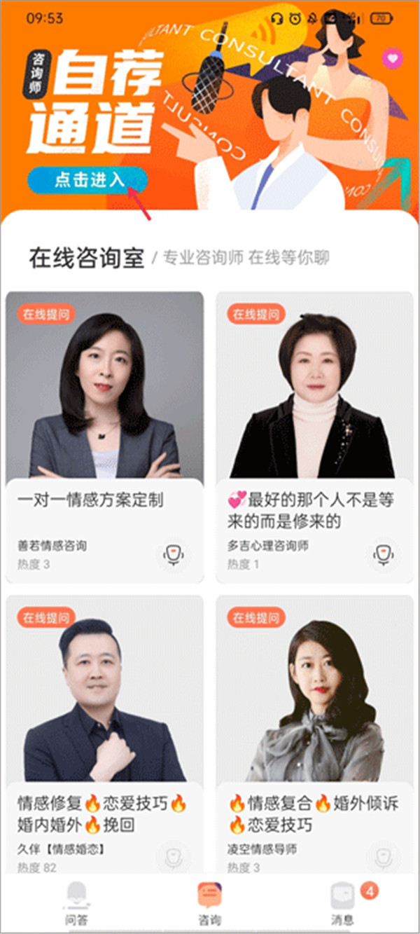 2. 在软件中,用户可以就感情相关的问题向各位专家进行咨询。