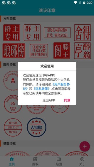 1、进入速设印章后,需同意用户协议与隐私政策,方可继续使用该功能。