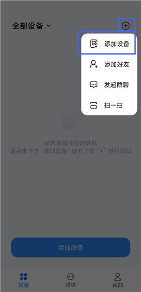 2用户还能通过点击页面右上角的加号图标,再选择“添加设备”选项来进入相应界面。