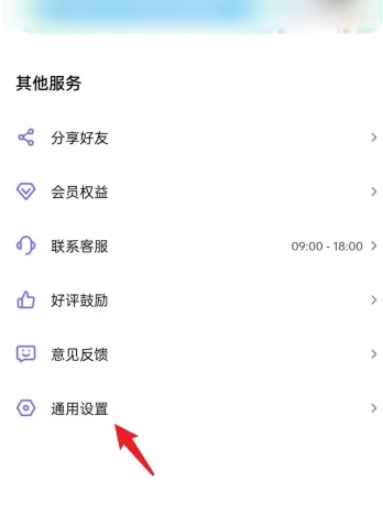 2、在个人中心页面中,找到并点击【通用设置】选项,进入设置功能区。