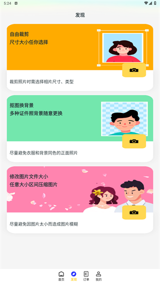 4、发现中还提供自由裁剪、抠图换背景、文件修改等实用功能。