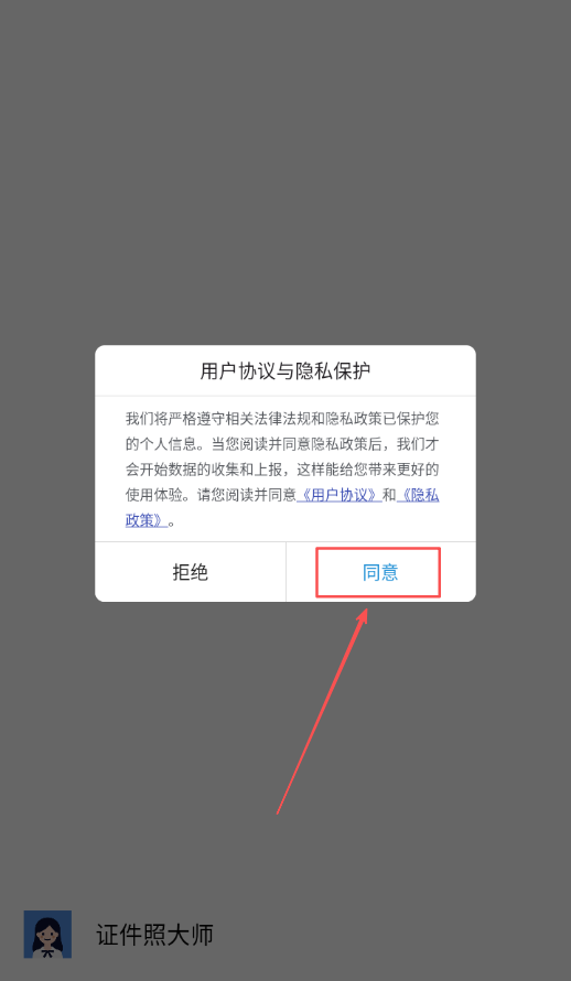 1、打开证件照大师后,界面会弹出软件协议弹窗,仔细阅读协议内容后点击同意选项,完成协议确认才能进入软件主界面。