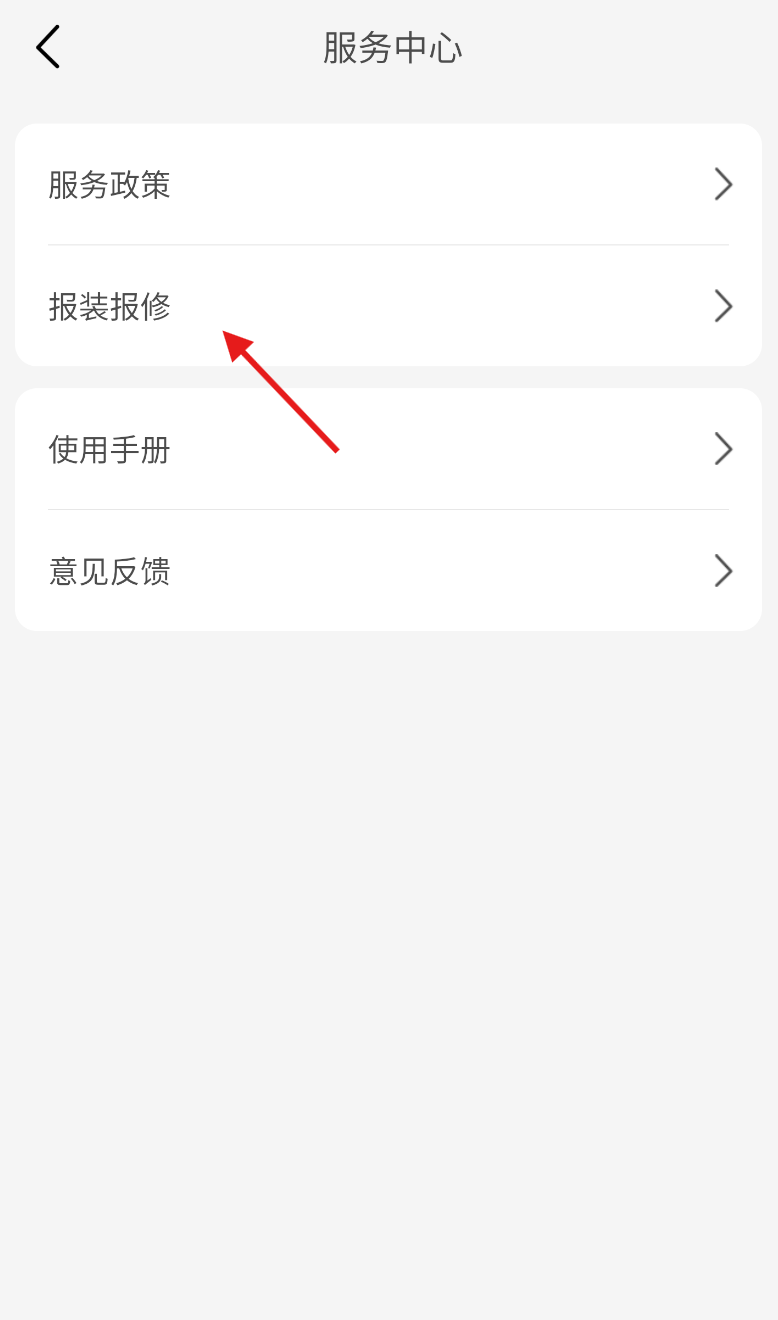 3、在 “服务中心” 界面,定位 “报装报修” 功能按钮,点击进入报修服务通道。