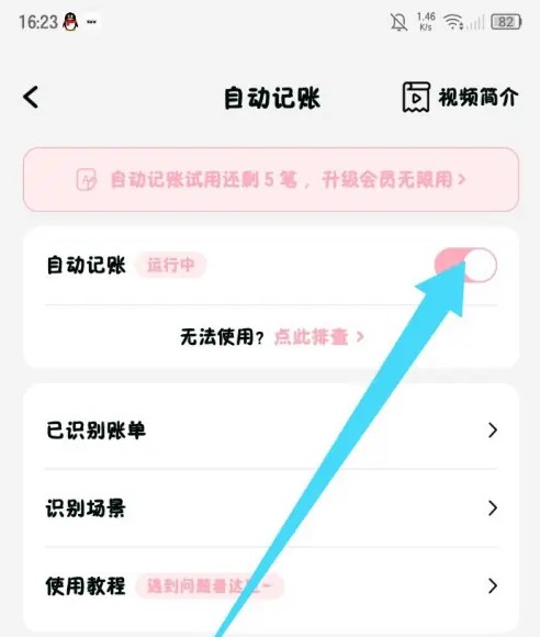 3、进入自动记账设置页面后,点击“自动记账”后方的滑块按钮将其开启即可。