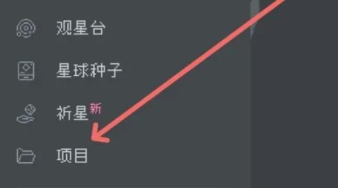 2、在打开的侧边栏位中,找到“项目”功能,点击打开项目界面。