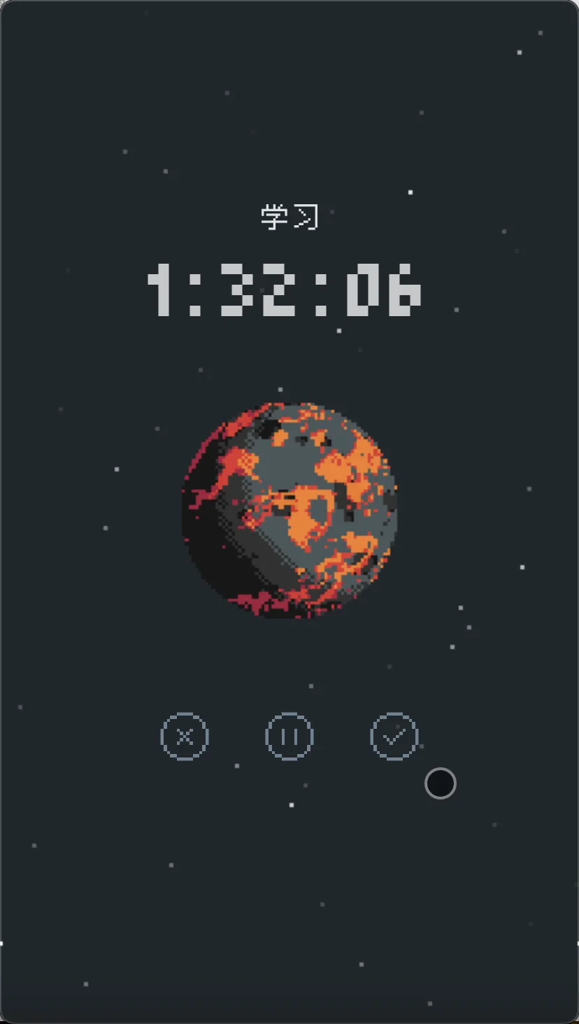 2、当用户在进行专注模式时,用户就可让星球开始演化成长。
