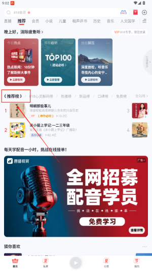 提供大量的有声书资源,覆盖文学、历史、科幻、教育等多个类别。