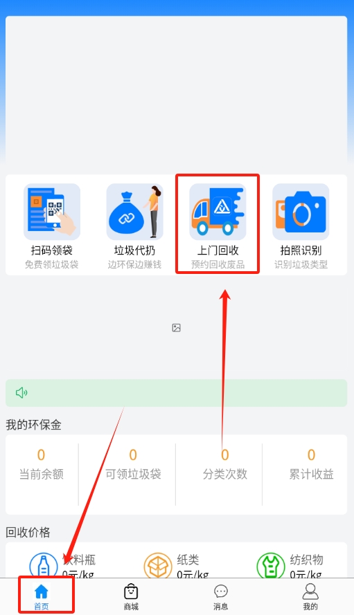 3、成功登录后系统会自动跳转回主页面,这时候点击首页的上门回收就可以预约上门回收服务了。