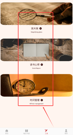 3、工具内配备了丰富的放大镜功能与读书心得功能,点击即可打开使用。