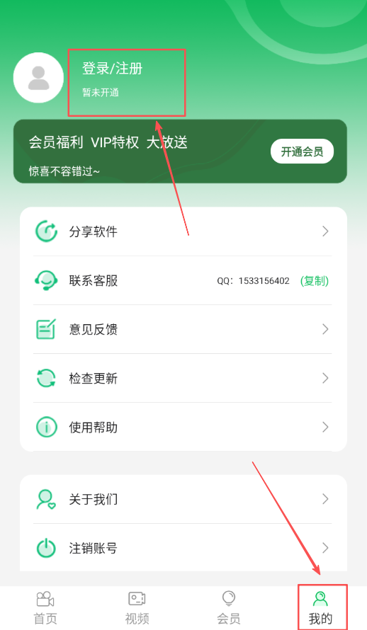 1、打开超清录屏神器后,在界面中找到我的页面入口并点击进入,在我的页面内找到登录选项,点击后跳转至登录界面。