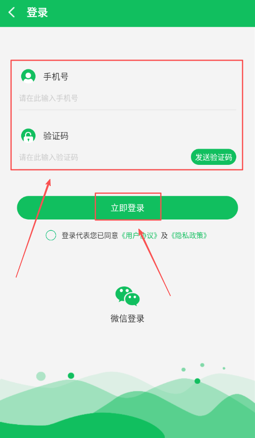 2、进入登录界面后,按照页面提示输入个人手机号,等待并填写收到的验证码,确认信息无误后,完成账号登录操作。