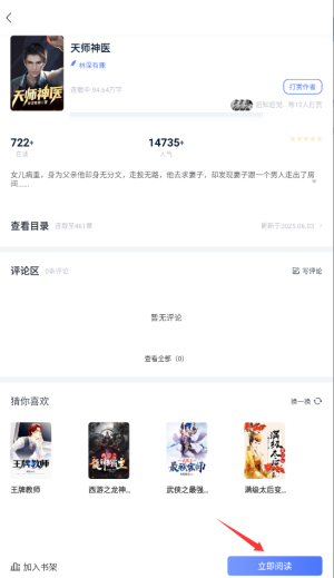 3、选中感兴趣的小说后,点击页面底部"立即阅读"按钮,即可开始阅读最新章节内容。