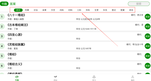 1、安装后进入主界面,可浏览书籍、药材、方剂等模块,通过分类索引快速定位目标内容。