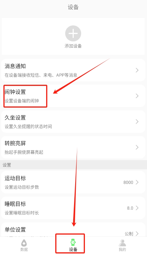 1、 把 lifeai软件安装好,顺利打开后,在主界面找到 “设备” 板块,点进去就能看到闹钟设置入口。