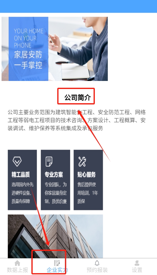 2、想了解企业实力的话,在软件里找到公司简介板块,点进去就能查看详细内容。