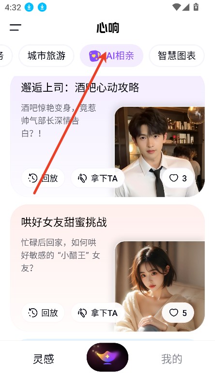 1、进入心响ai首页,提供哇塞,执行任务,城市旅行,ai相亲,智慧图标等多个板块的ai功能