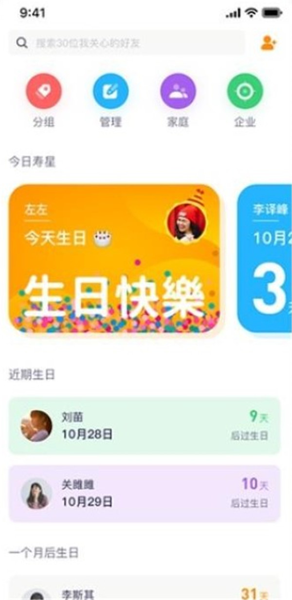 2、个性化分类系统,可按亲友关系自定义分组,快速查找特定人群的生日信息。