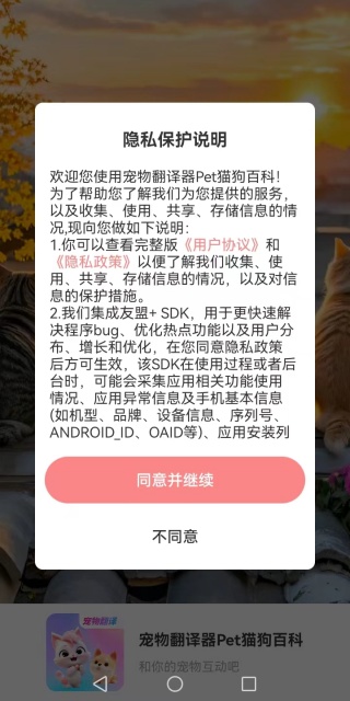 宠物翻译器Pet猫狗百科是一款专注于宠物语言翻译与养育知识服务的工具类软件,核心提供猫言狗语双向翻译、宠物百科查询、健康档案管理等功能,助力铲屎官与宠物高效互动,软件整合宠物叫声解析、人声翻译、品种专属养护方案及健康记录等工具,覆盖宠物交流、养育、健康管理全场景,满足宠物主人多样化需求。