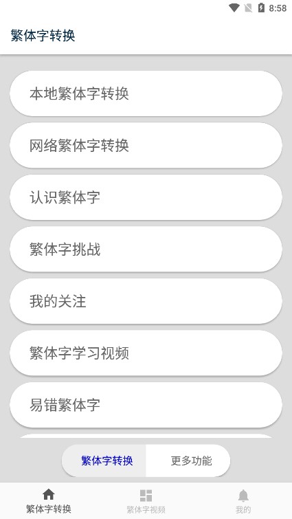 3、进入首页后,用户能够快速查看并访问各类服务功能,比如简体字转换、学习模块、易混字模块等。