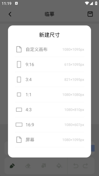 2. 用户可按需选择尺寸,使用多种彩笔绘画。