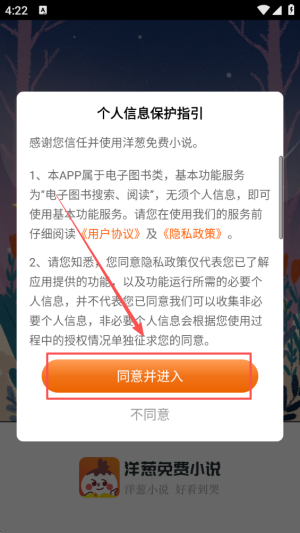 轻触同意按钮后,您即可进入应用,体验丰富的资源与便捷的操作。