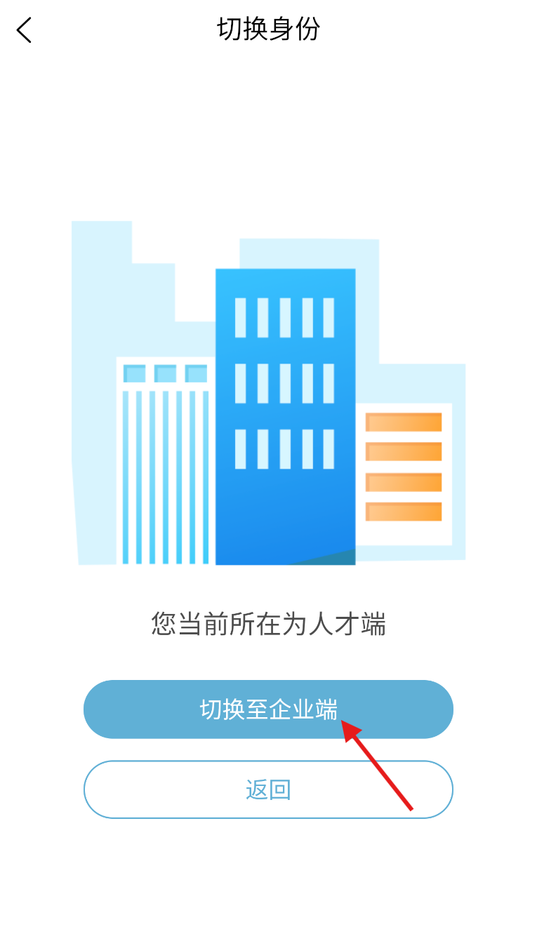 4、进入角色选择界面后,找到并点击“切换至企业端”选项,就能完成企业端的切换操作。