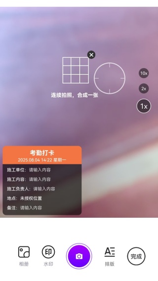 在工作场景中,通过添加包含时间和地点信息的打卡水印,能够实现对考勤情况的精准记录。