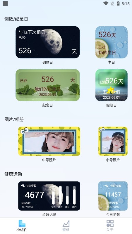 1、小组件工具:涵盖可提醒日程的倒数日工具、时钟组件等,提供多样化的显示样式选择。