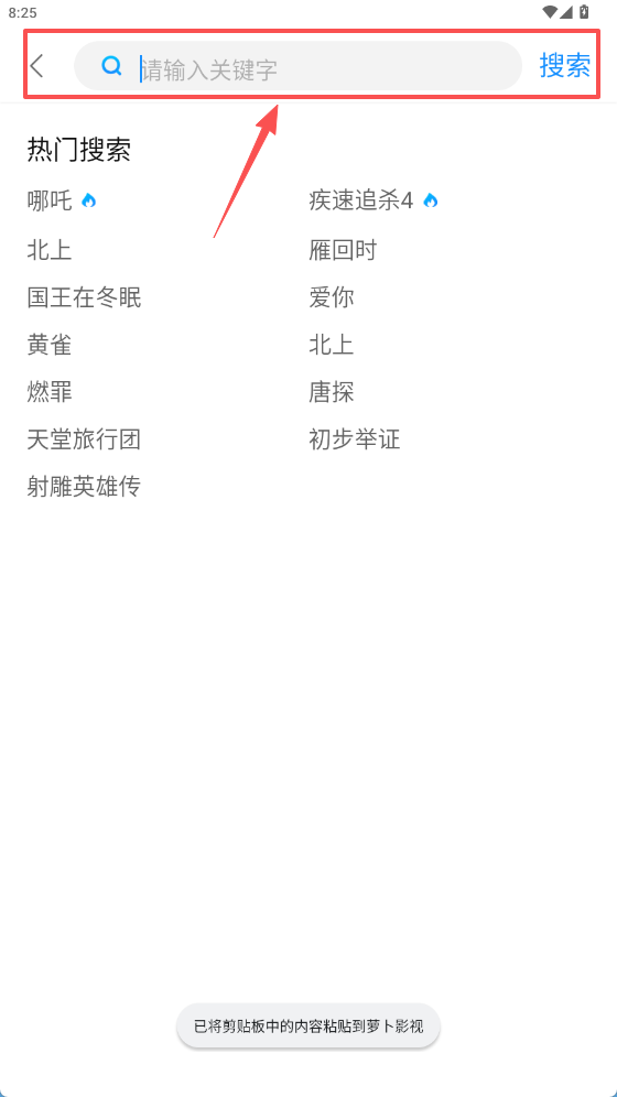 2、点搜索框输剧名,或点热门搜索词条,如哪吒快速找到对应影片。