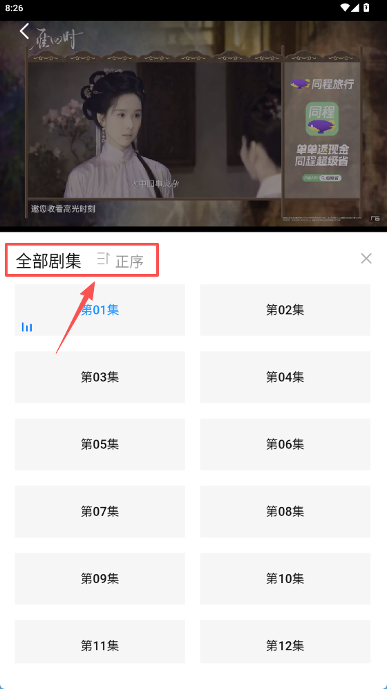 3、点全部剧集选集数,从第1集开始按顺序观看影片。