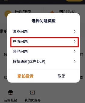 在客服选项中,选择与充值相关的选项,例如“充值问题”。