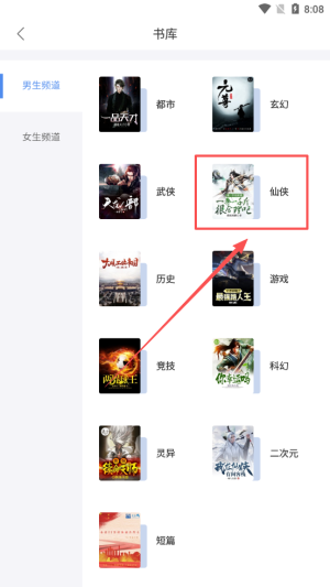 2、点击分类,可以选择自己喜欢的类型查找小说