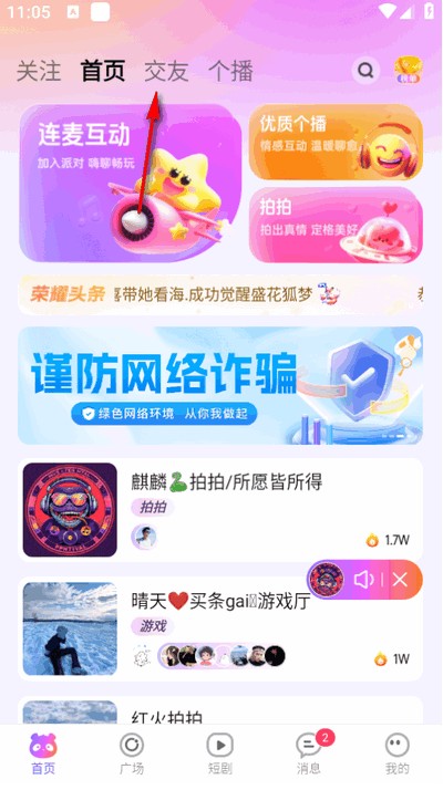 2平台搭建了多样化的互动场景,包括个人直播、连麦交流、拍拍厅等形式。个人直播能让用户充分展现自身魅力,连麦交流则进一步提升了实时互动的效果。