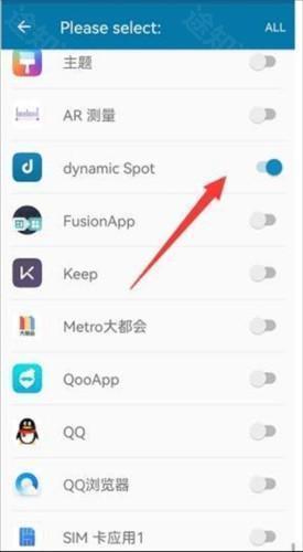 3、第三步:进入第一行我们需要先找到【dynamicSpot】,然后开启后面的开关。