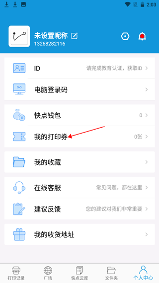1、首先打开快点云打印,登录后进入【个人中心】。