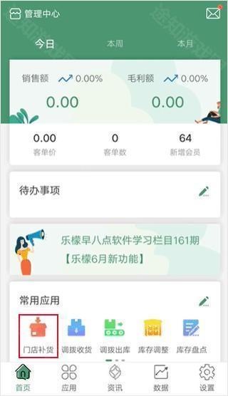 1、首先打开乐檬零售,进入首页选择门口补货;